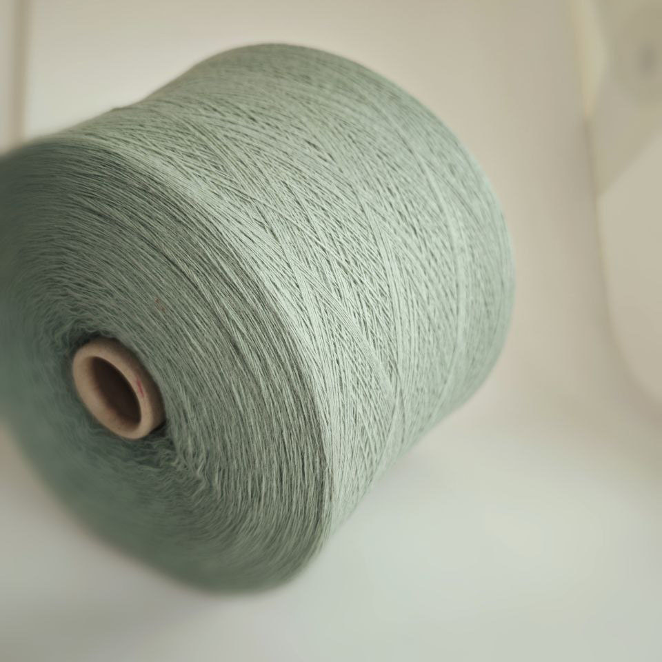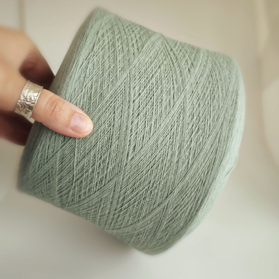 Оттенок эвкалипт — светлый серо-зелёный с холодным, припылённым подтоном. Свежий, сдержанный и очень носибельный цвет, который легко вписывается в гардероб и красиво смотрится в готовых изделиях.