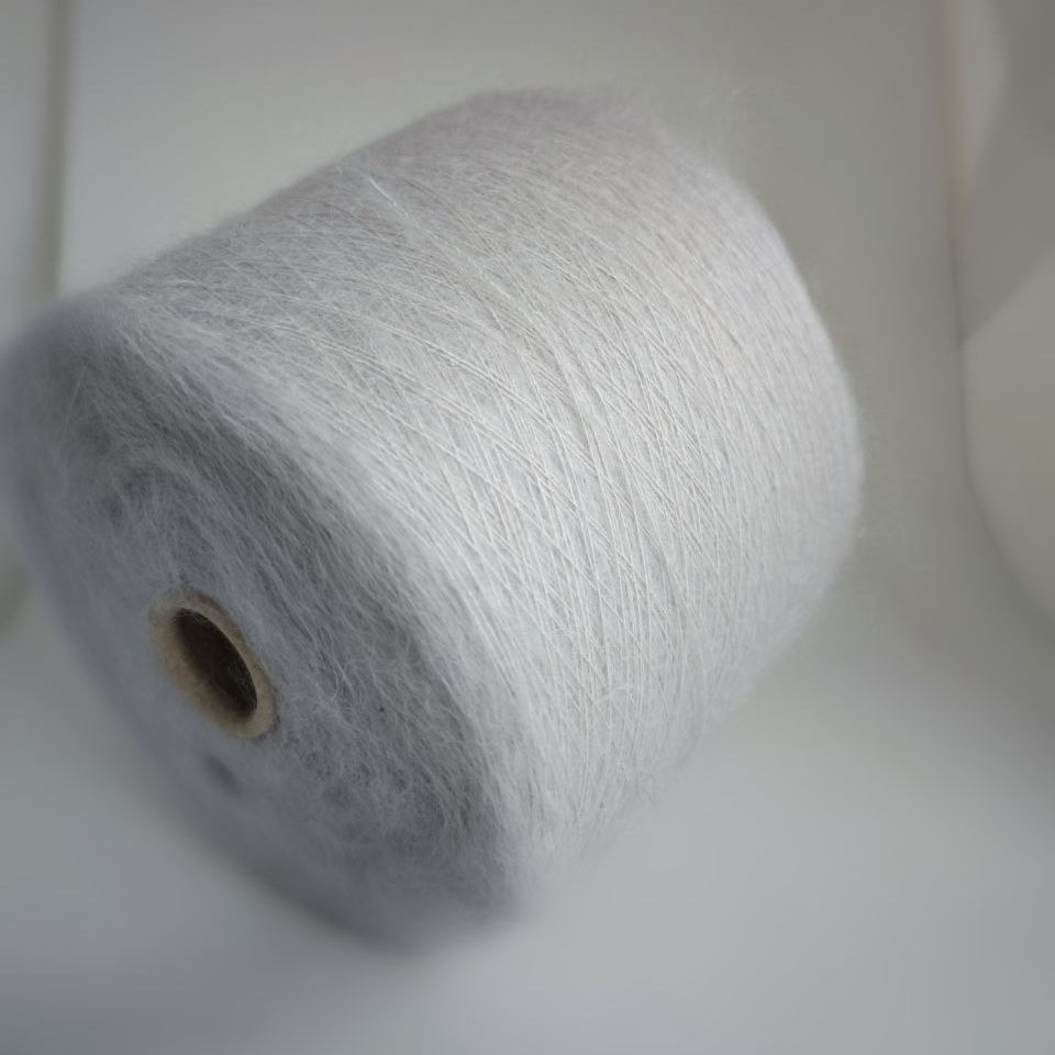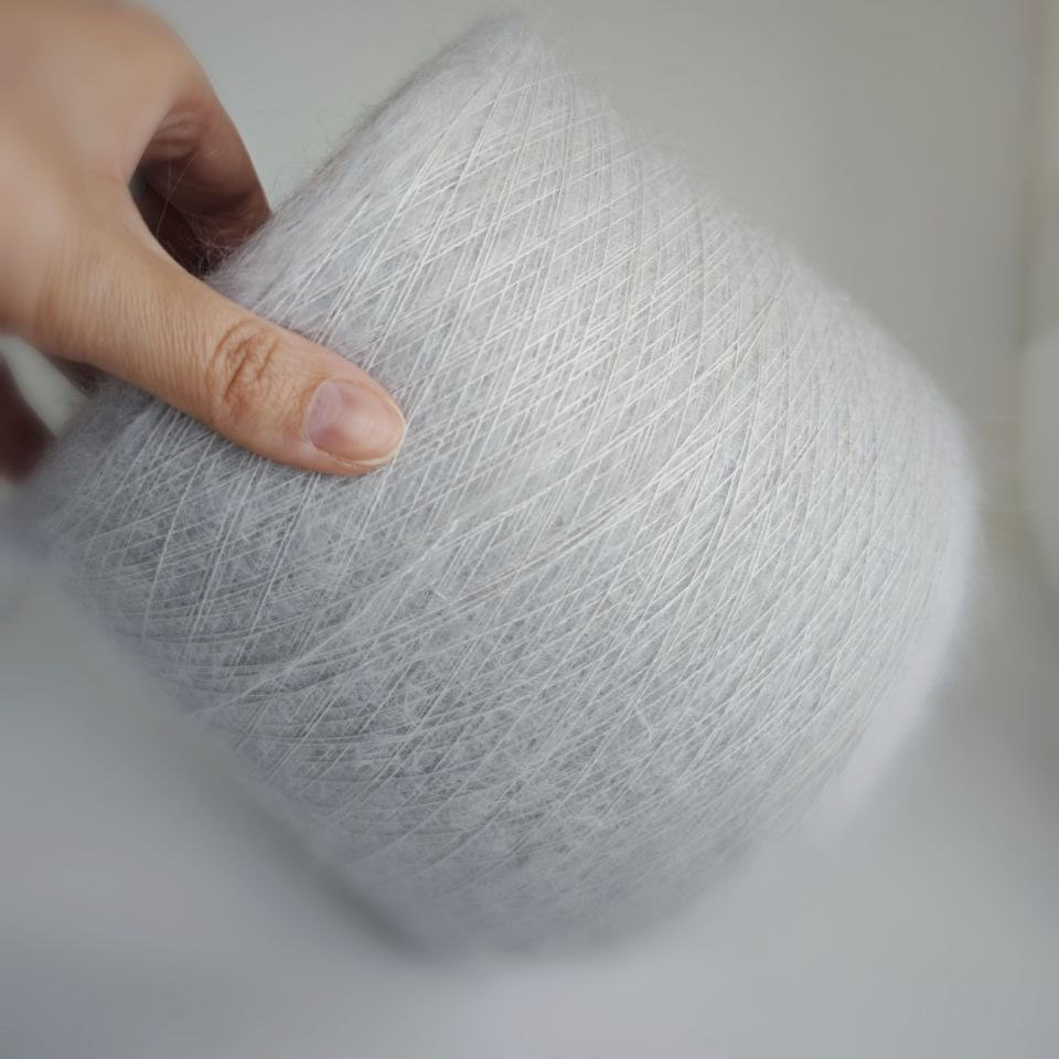 Нить невероятно лёгкая, струящаяся и почти невесомая. Благородный пушок кидмохера в сочетании с шёлковой основой даёт мягкое сияние, пластичность и очень красивую игру света в полотне.