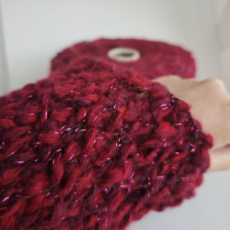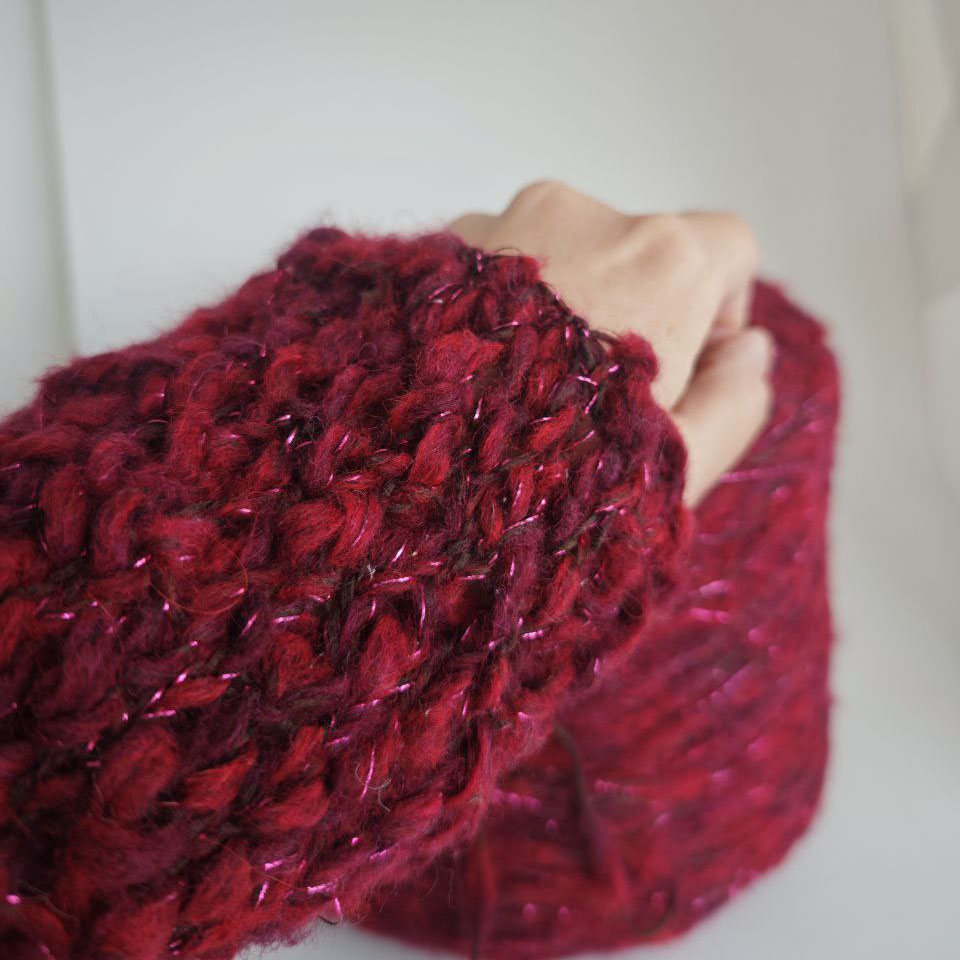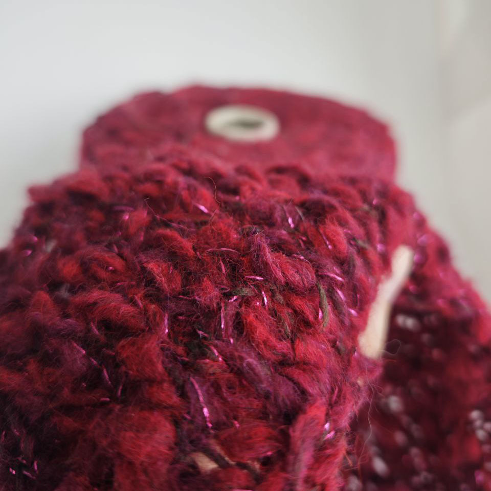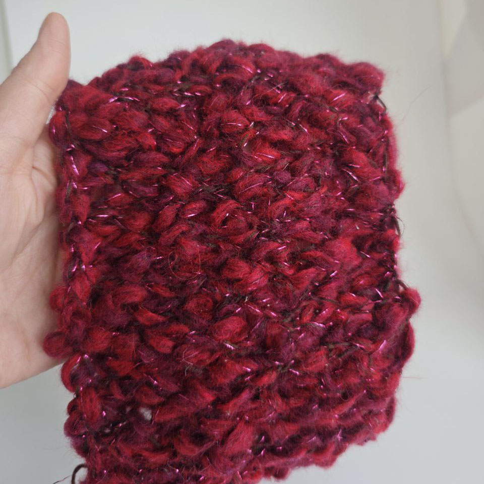 Эта пряжа — настоящий акцент в изделии. Нить с шишибриками и утолщениями создаёт живую, объёмную фактуру, а лёгкий пушок делает полотно уютным и мягким на ощупь.