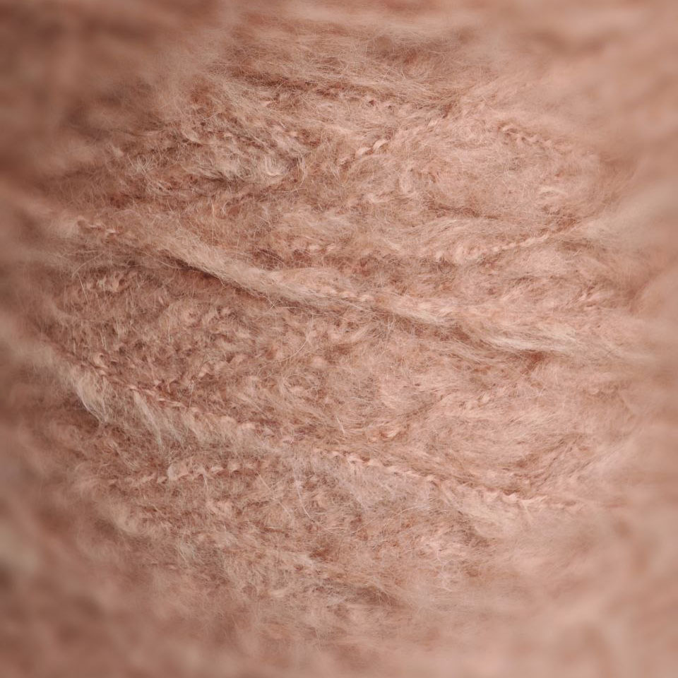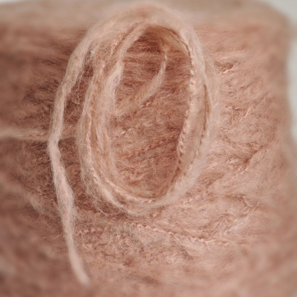 Пышный, равномерный пушок создаёт объёмное, облачное полотно. Вязание получается живым, мягким, с эффектом «дорогого уюта» — даже самые простые петли выглядят благородно.